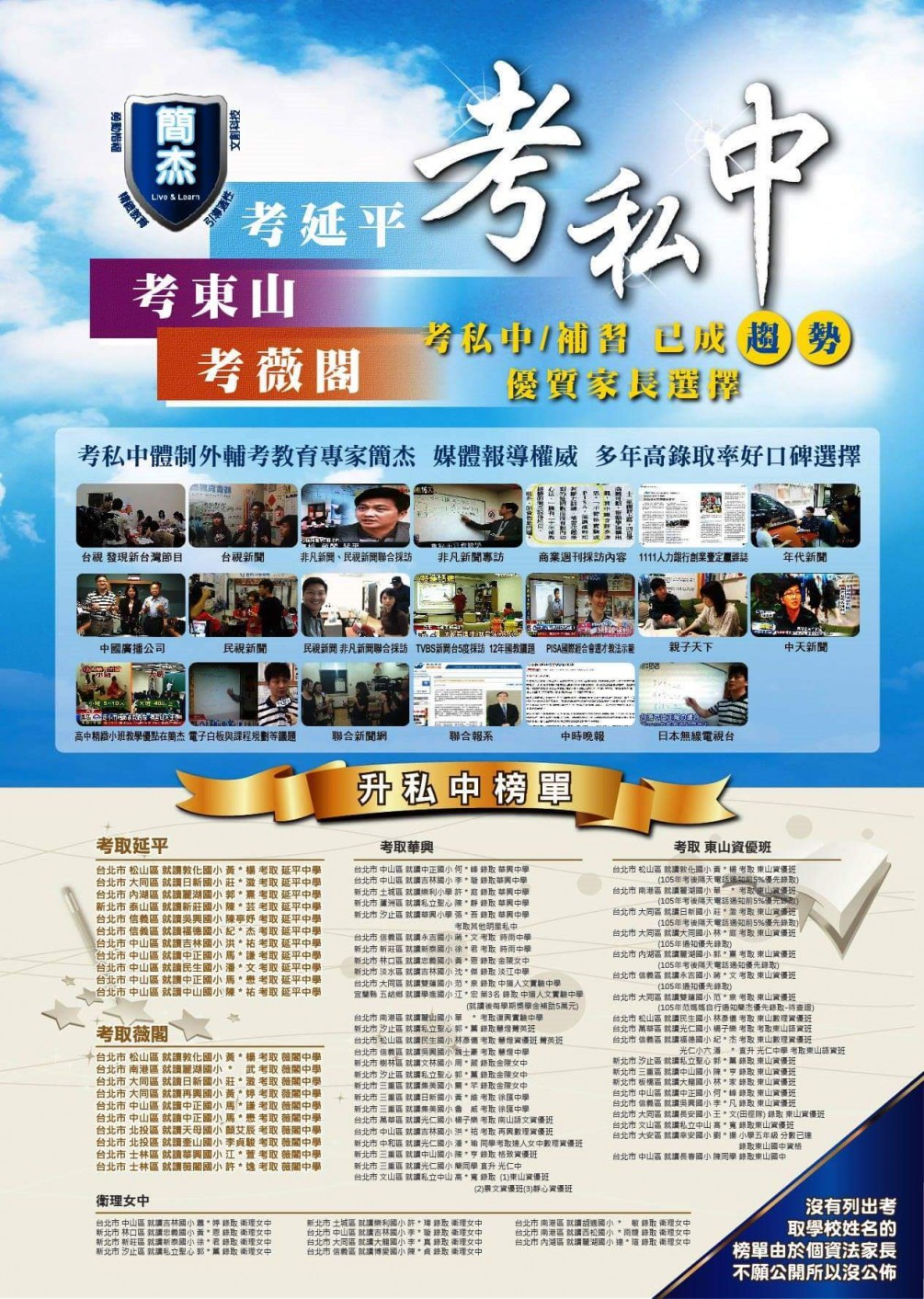 簡杰教育實業暨簡杰文理補習班創辦人 簡鸞德老師常常受訪專業升學議題正面評價