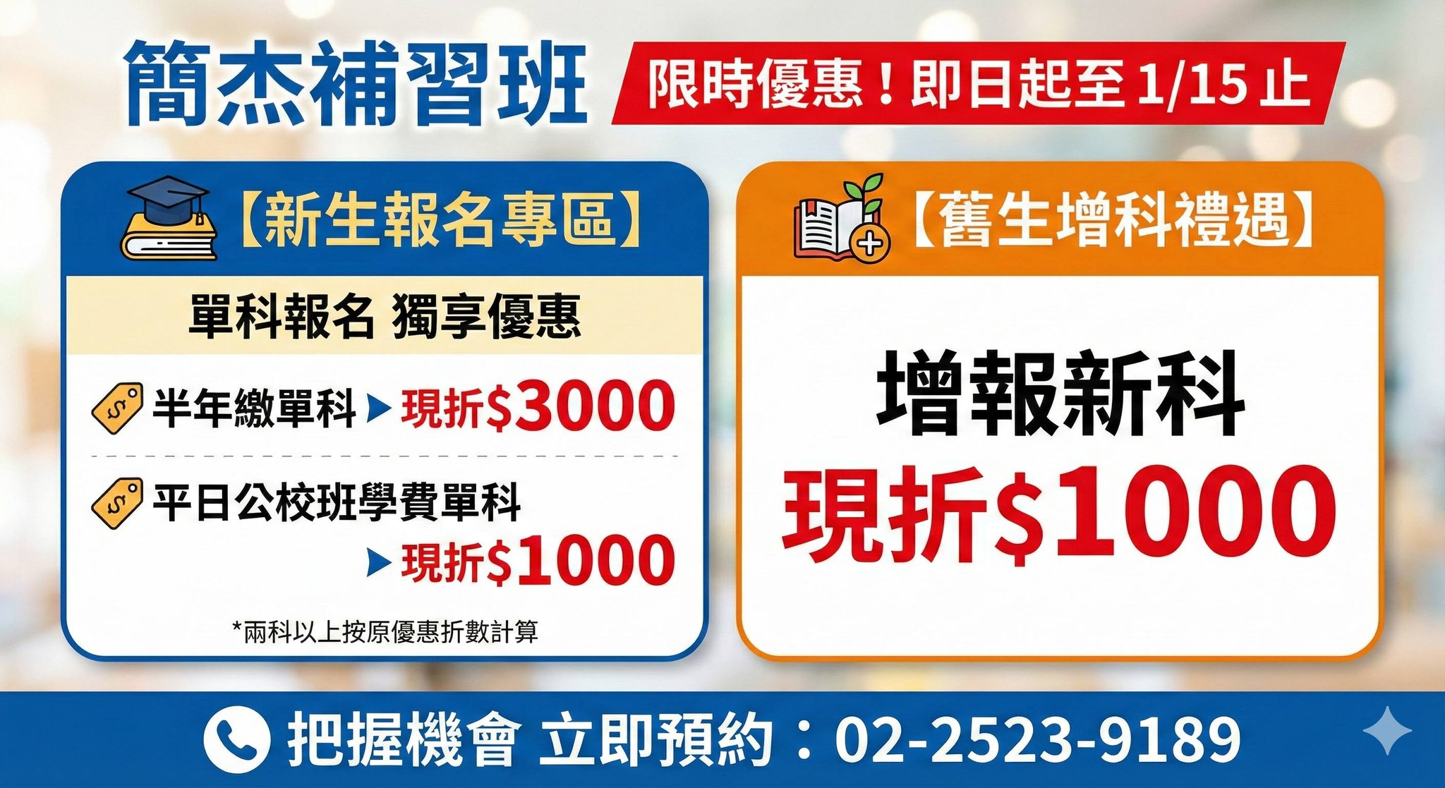 簡杰補習班為你的國中學涯奠定堅實基礎!