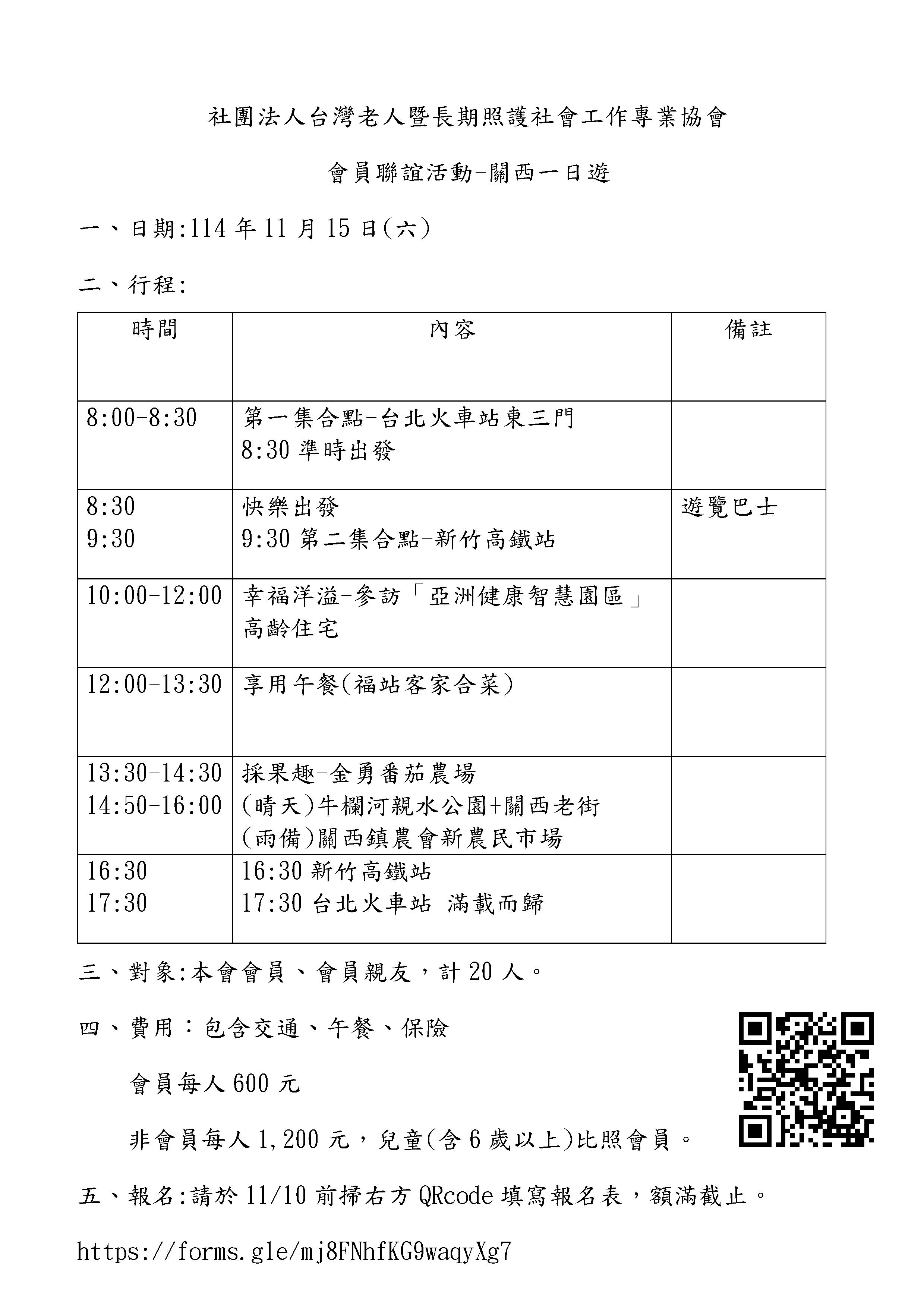 【會員活動】114年度會員聯誼活動-關西一日遊