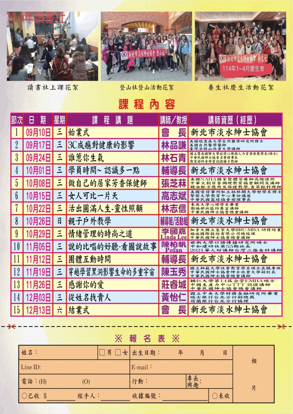 淡水分會114年秋季班招生簡章