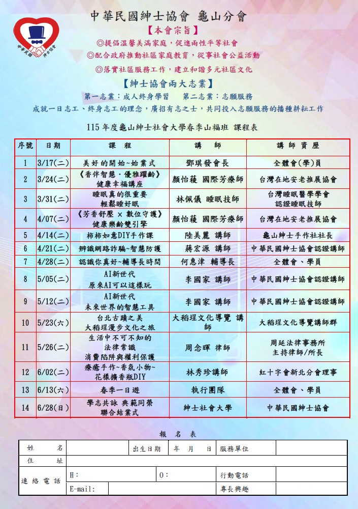 龜山分會115年春季班招生簡章
