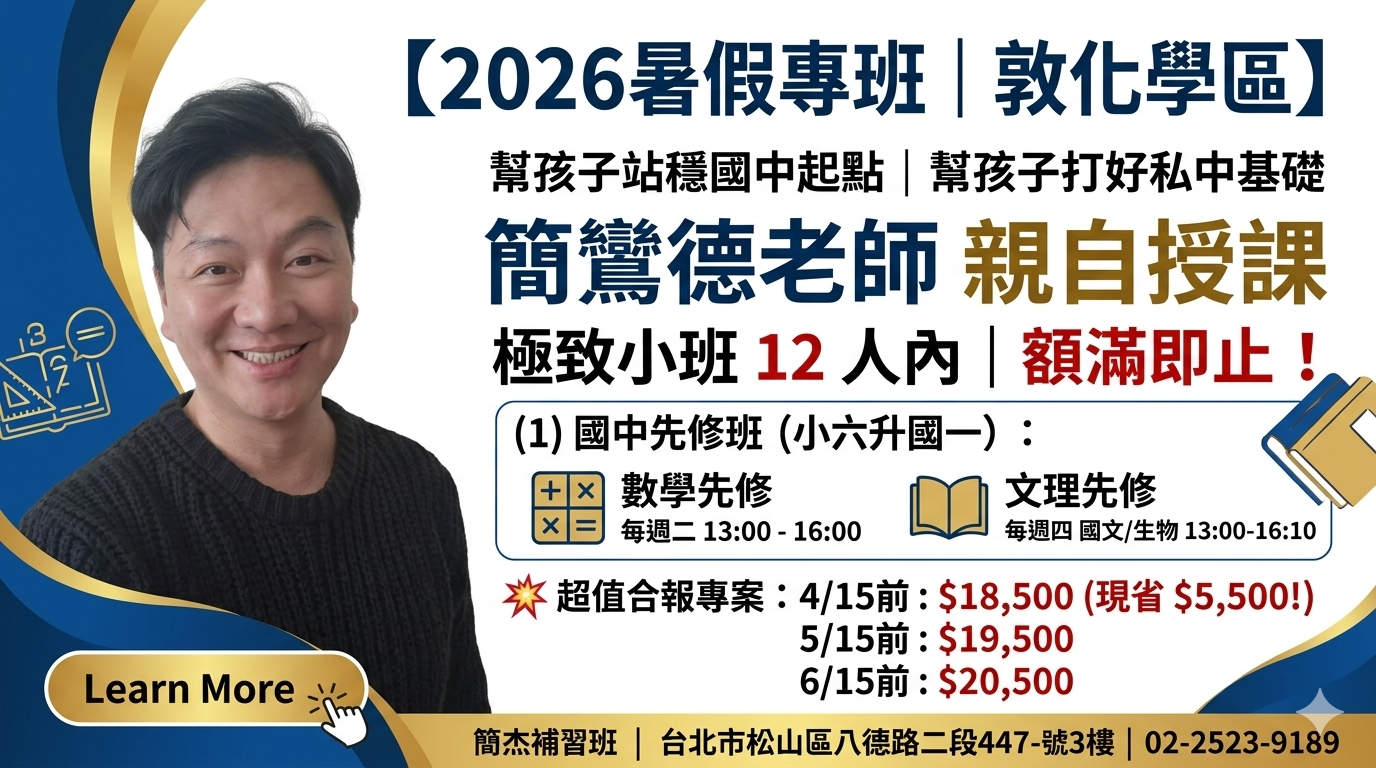 ✨敦化學區|簡杰補習班 每年開設兩班數學先修