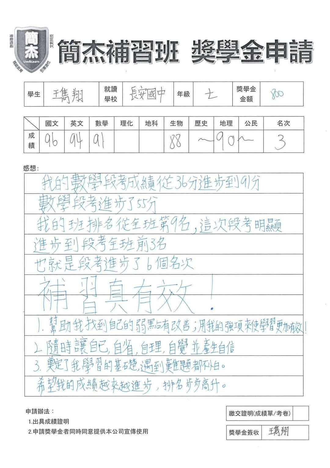 私立南山國中九年級維亘數學32-85分進步53分