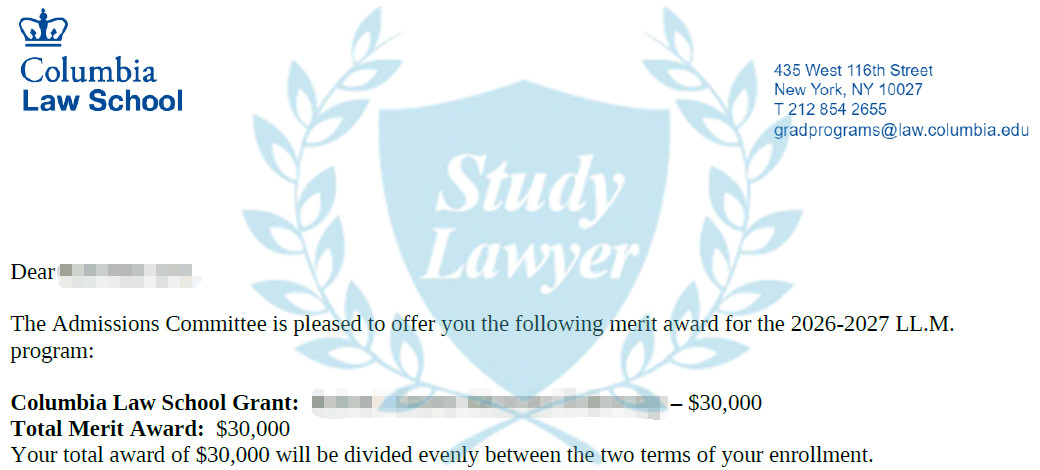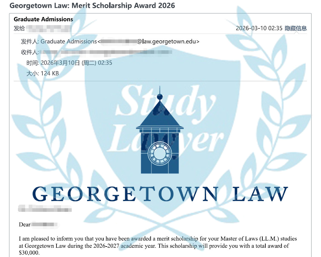 多位學律申請者收到了哥大法學院的LLM獎學金,金額最高達3萬美元,恭喜!此外,近日也有申請者收到喬治城大學法律中心的獎學金,金額同樣高達3萬。