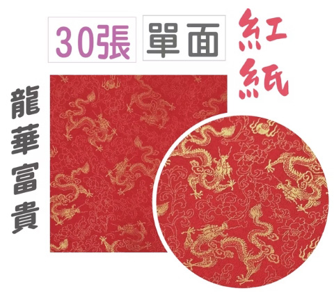 15CM仿絨紅紙.色紙-龍華富貴30張裝