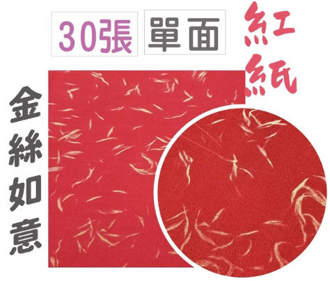 15CM仿絨紅紙.色紙-金絲如意30張裝
