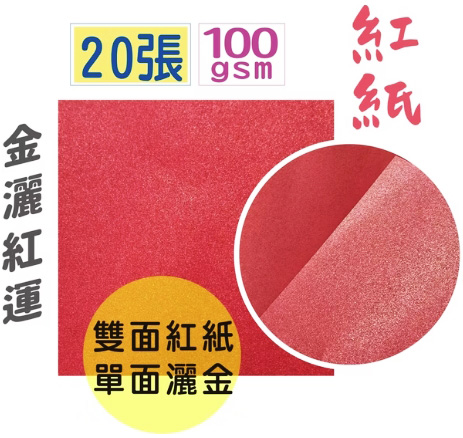 15CM紅紙.色紙-金灑紅運20張裝/1